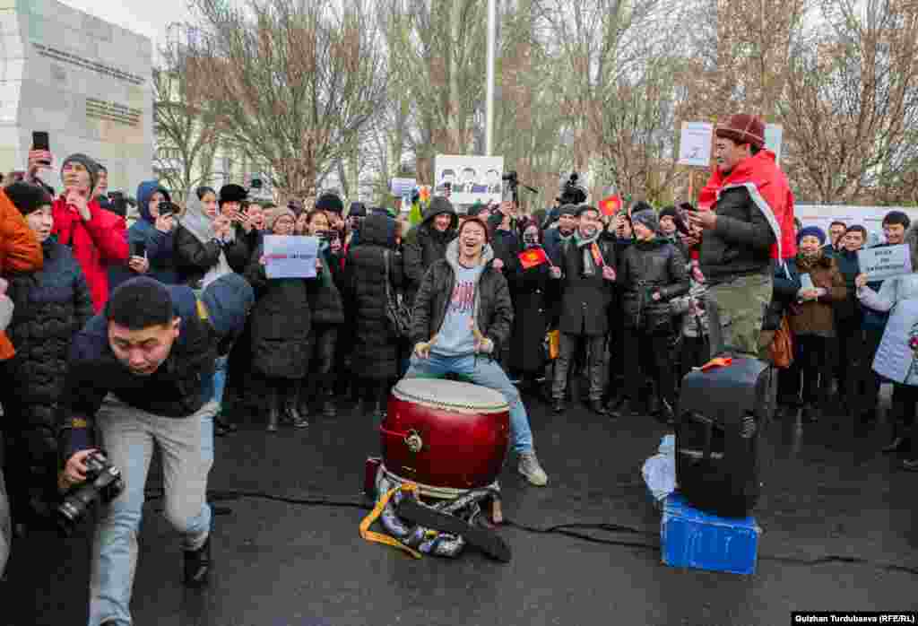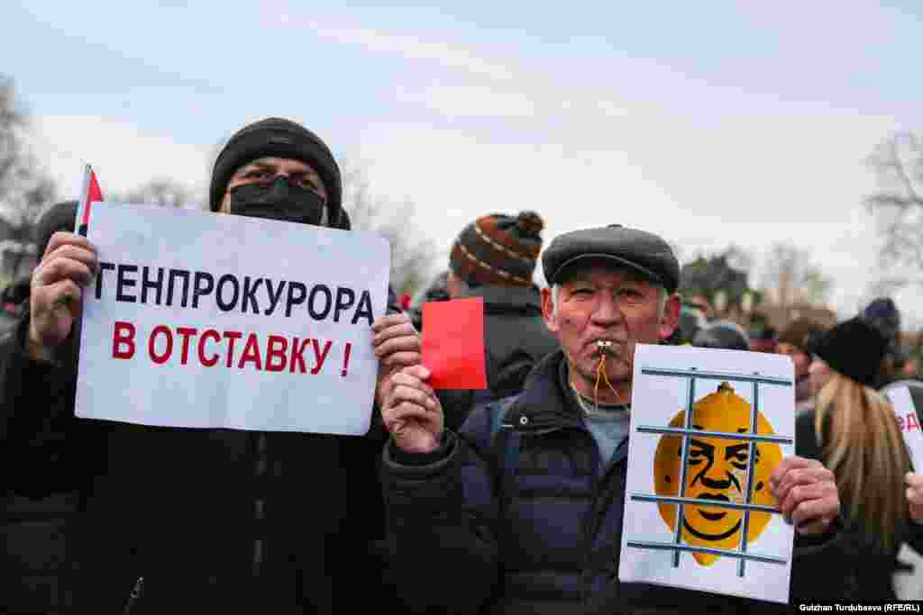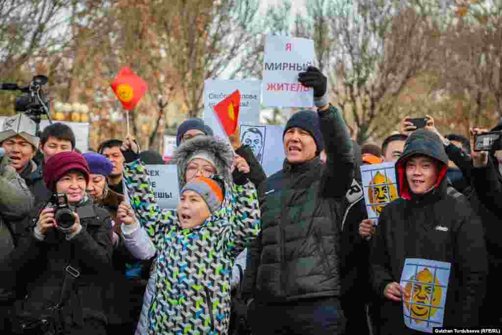 Акциянын катышуучулары «Сөз эркиндиги!, Бардыгынын оозун жаба албайсың!, Бизге факты керек!, «Азаттыкка» азаттык!, Райым камалсын!, Уурулардын орду түрмөдө!, Реалдуу реформа!» деген ураандарды чакырып турушту.