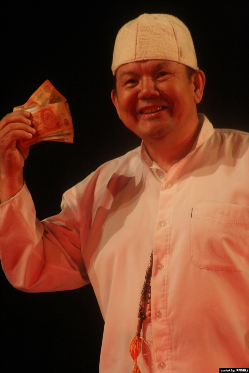 Бир кезде Акаевдин өргөсүнө чакырып калышты. "Эмне болуп кетти?",-деп жыла басып бардым. Ал жерде мени “белгилүү артисттерди туурап пародия аткарат экенсиң, саясатчыларды да туурап пародия аткарбайсыңбы?”,-деп калышты. Анан макул болуп, Михаил Горбачёвду, маркум Апсамат Масалиевди туурап бердим. Бир кезде Акаев “мени да туурап көрбөйсүзбү. Сиздин номериңизди сыналгыдан көрдүм эле”,-деп калды. Президент ошентип айткандан кийин мен жөн турмак белем. Туурап кирдим.
