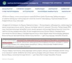 Ошондой эле президенттин сайтында алгач мындай деп жазылган: "Ал (ред: Исаков) белгилегендей, мамлекеттик жана жергиликтүү өз алдынча башкаруу органдарынын жетекчилери жеке дүйнө таанымын жана диний билимдерин өстүрүү, коомдогу түрдүү диний радикалдык көз караштарды ажыратып таануу максатында Академиянын лекцияларынын угуучулары болушат". Бирок бир күндөн кийин сайттагы "мамлекеттик жана жергиликтүү өз алдынча башкаруу органдарынын жетекчилери" деген жер "дин кызматкерлери" деп өзгөртүлүп калган.
